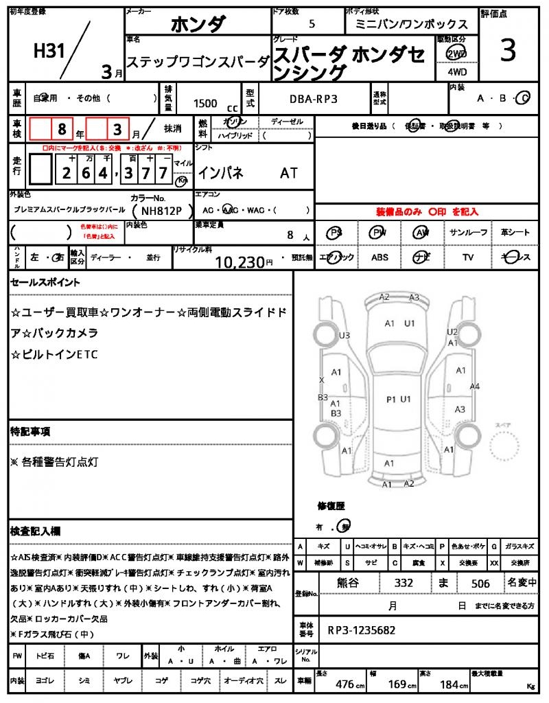 | HONDA | STEPWAGON SPADA | 2019 | 1500 cc | ||||||||||||||||