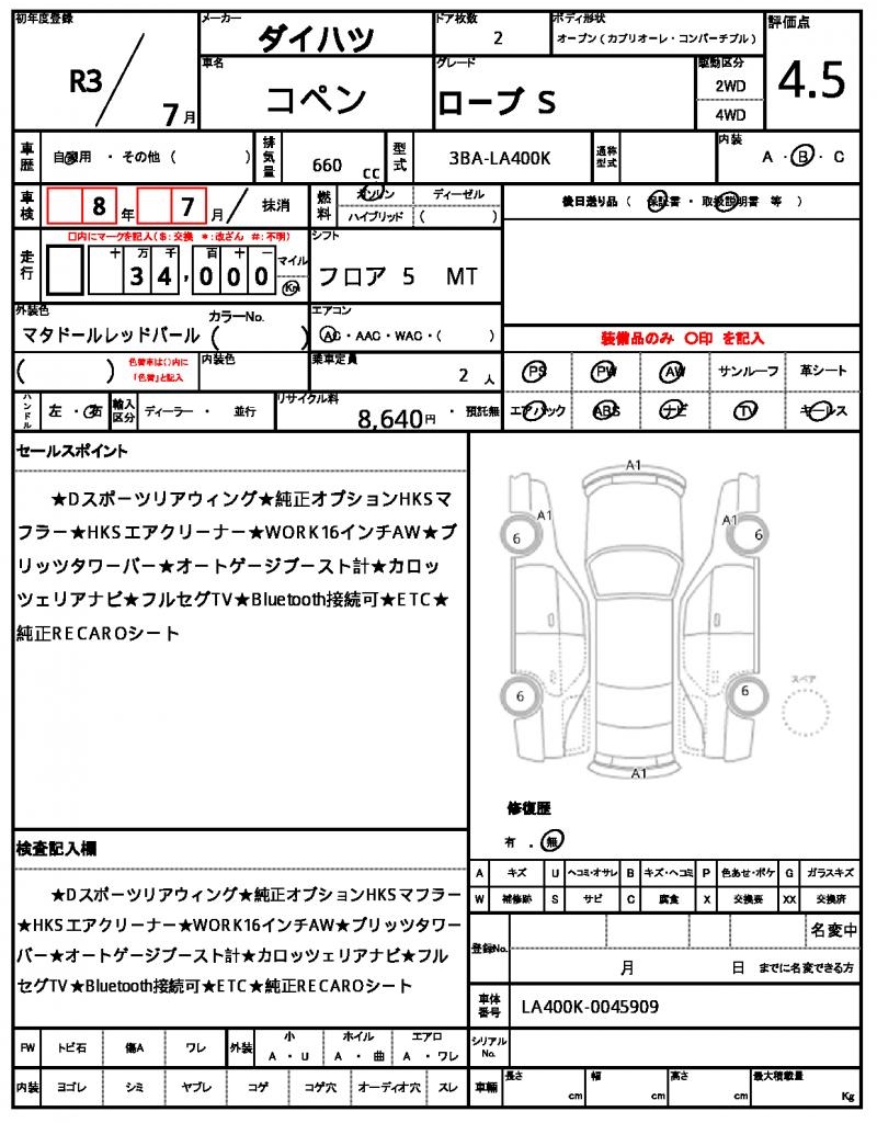 | DAIHATSU | COPEN | 2021 | 660 cc | ||||||||||||||||