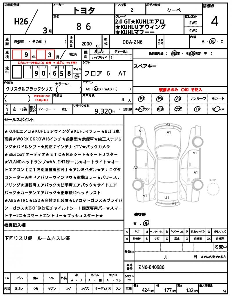 | TOYOTA | 86 | 2014 | 2000 cc | ||||||||||||||||