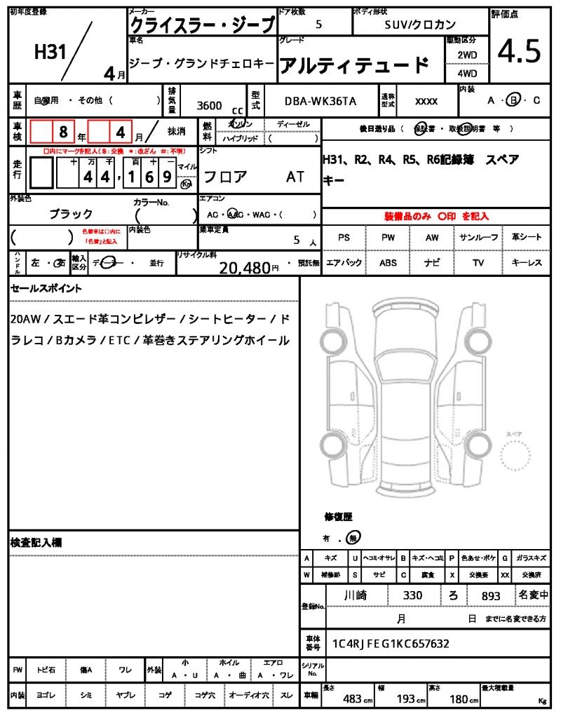 CHRYSLER JEEPJEEP GRAND CHEROKEE20193600 cc