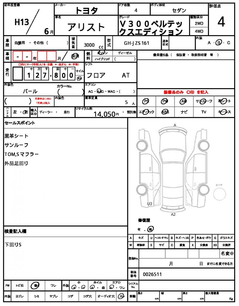 | TOYOTA | ARISTO | 2001 | 3000 cc | ||||||||||||||||