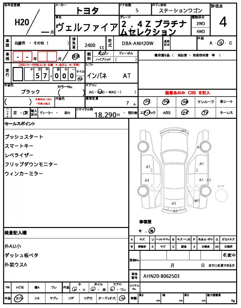 | TOYOTA | VELLFIRE | 2008 | 2400 cc | ||||||||||||||||