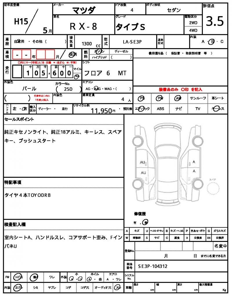 | MAZDA | RX-8 | 2003 | 1300 cc | ||||||||||||||||