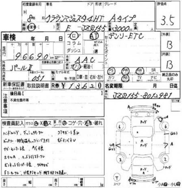 | TOYOTA | CROWN MAJESTA | 1996 | 3000 cc | ||||||||||||||||