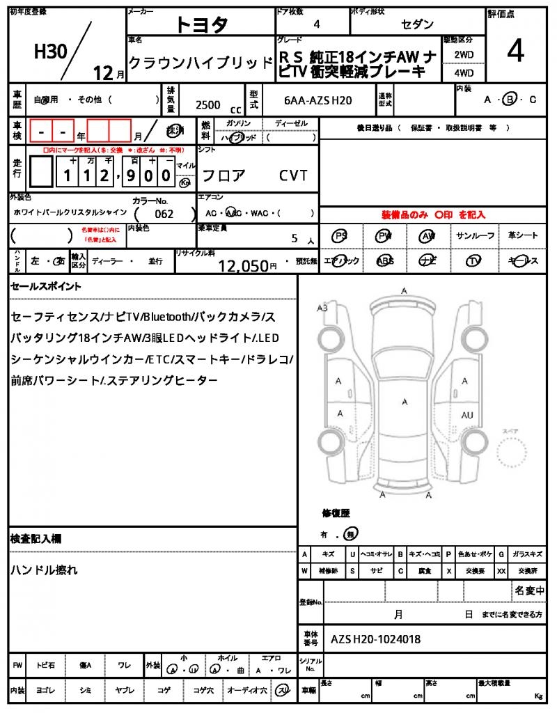 | TOYOTA | CROWN HYBRID | 2018 | 2500 cc | ||||||||||||||||
