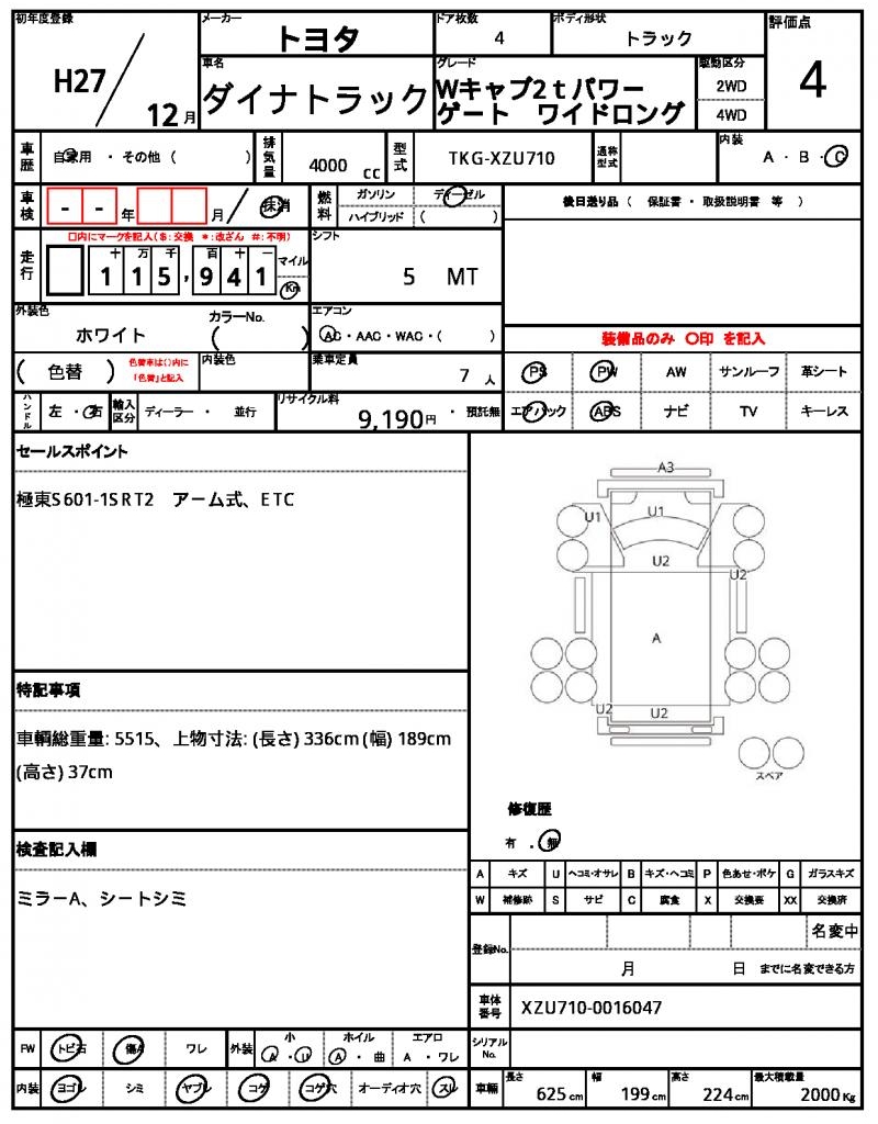 | TOYOTA | DYNA TRUCK | 2015 | 4000 cc | ||||||||||||||||
