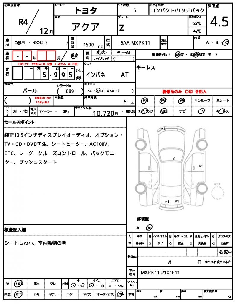 | TOYOTA | AQUA | 2022 | 1500 cc | ||||||||||||||||