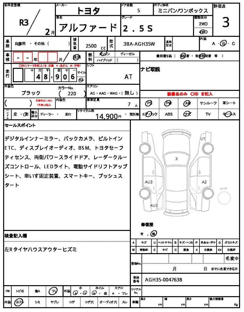 | TOYOTA | ALPHARD | 2021 | 2500 cc | ||||||||||||||||