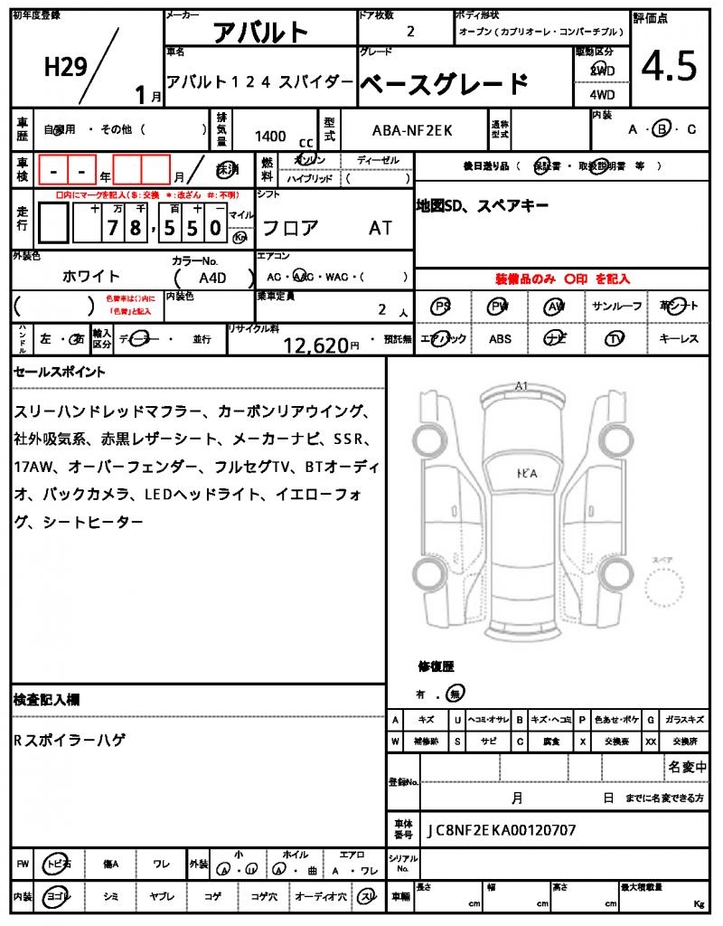 | ABARTH | ABARTH 124 SPIDER | 2017 | 1400 cc | ||||||||||||||||