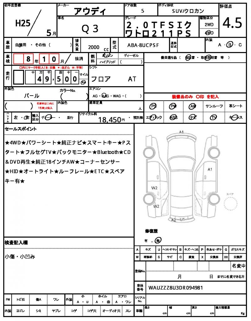 | AUDI | Q3 | 2013 | 2000 cc | ||||||||||||||||