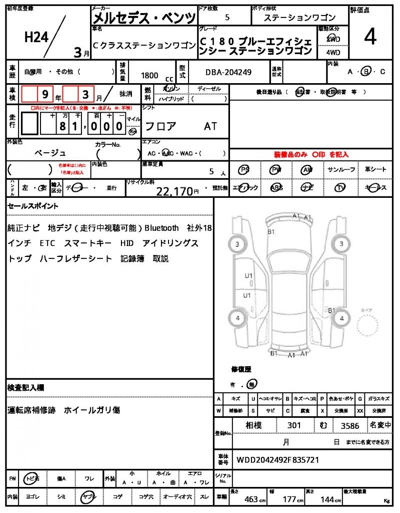 | MERCEDES BENZ | C-CLASS STATIONWAGON | 2012 | 1800 cc | ||||||||||||||||