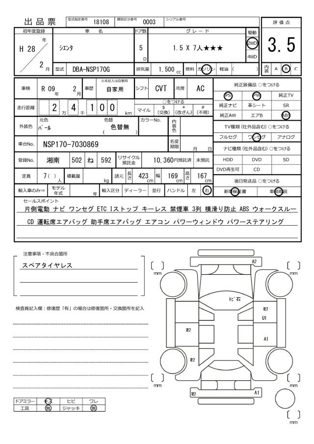 | TOYOTA | SIENTA | 2016 | 1500 cc | ||||||||||||||||