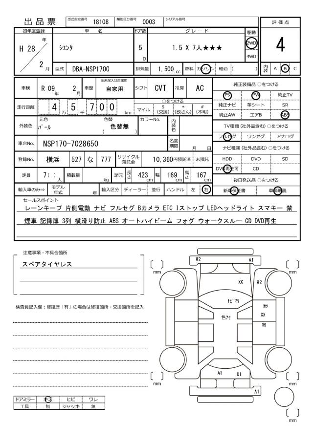 | TOYOTA | SIENTA | 2016 | 1500 cc | ||||||||||||||||