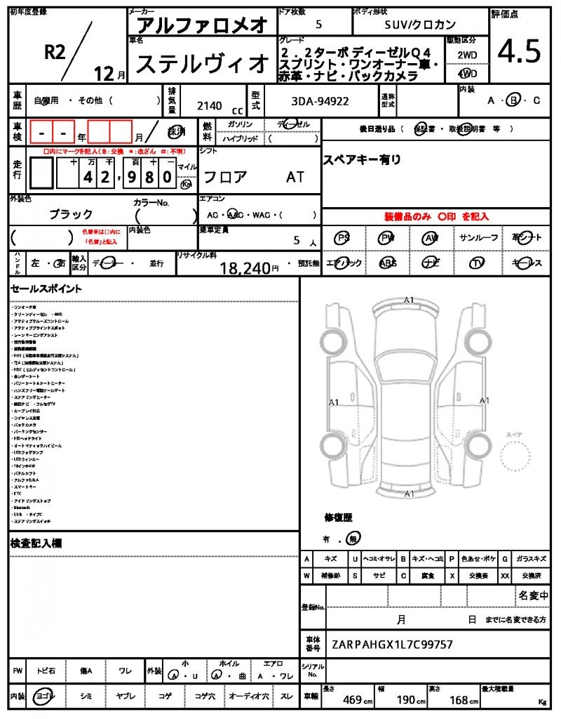 | ALFA ROMEO | STELVIO | 2020 | 2140 cc | ||||||||||||||||