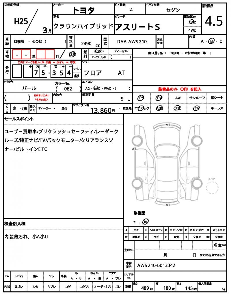 | TOYOTA | CROWN HYBRID | 2013 | 2490 cc | ||||||||||||||||