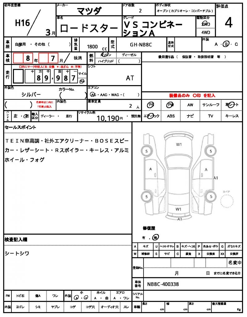| MAZDA | ROADSTER | 2004 | 1800 cc | ||||||||||||||||