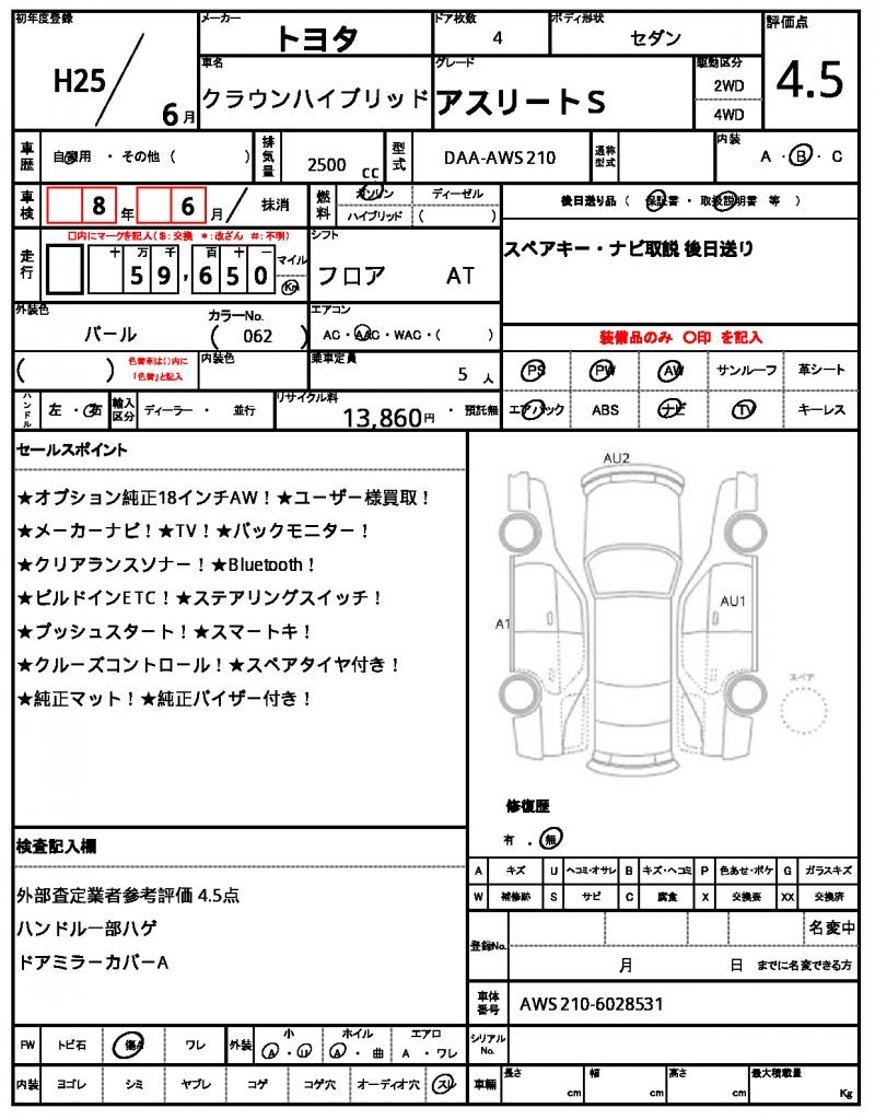 | TOYOTA | CROWN HYBRID | 2013 | 2500 cc | ||||||||||||||||