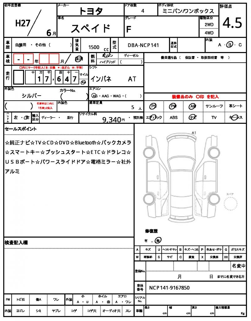 | TOYOTA | SPADE | 2015 | 1500 cc | ||||||||||||||||