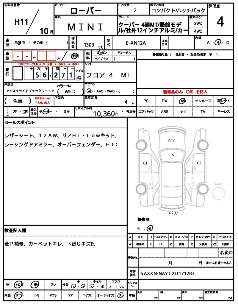 | ROVER | MINI | 1999 | 1300 cc | ||||||||||||||||