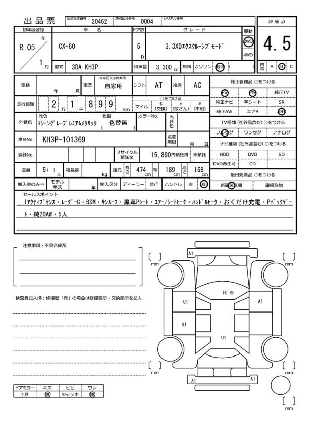Meet the 2023 MAZDA CX-60 SUV, a sleek gray ride with a powerful 3300cc diesel engine and 2-wheel drive. With features like power steering and power windows, this Mazda CX-60 is designed for comfort and convenience. This Japanese used car is available for international buyers through AutoXGlobal, making it easy to bring this reliable ride to your doorstep. Check out this 2023 MAZDA CX-60 Japanese used car export today!