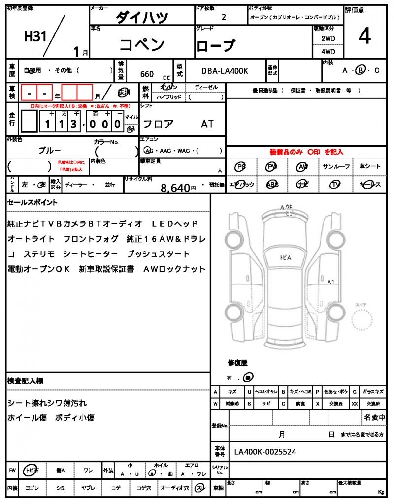 | DAIHATSU | COPEN | 2019 | 660 cc | ||||||||||||||||