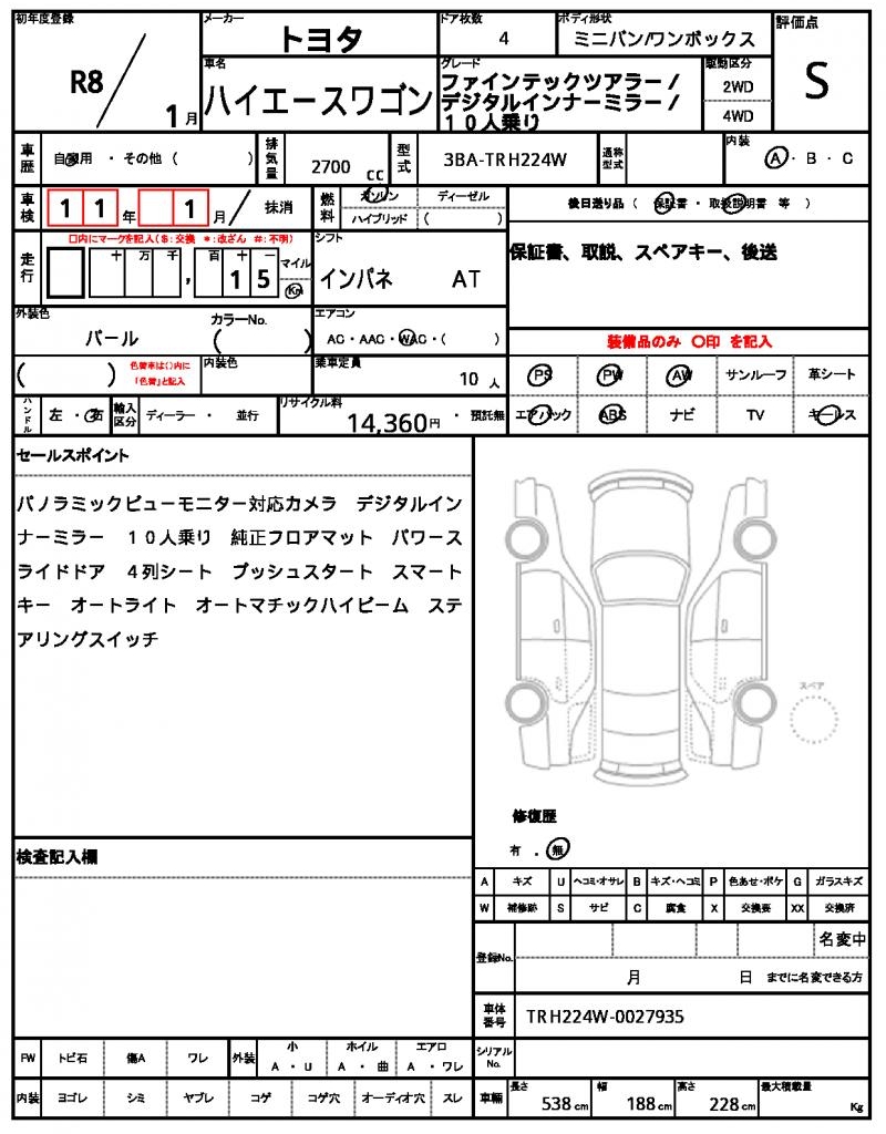 TOYOTAHIACE WAGON20262700 cc