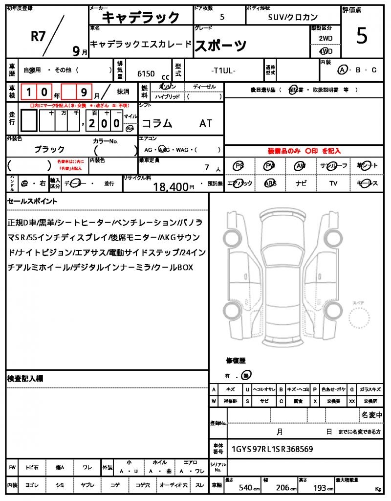 | CADILLAC | CADILLAC ESCALADE | 2025 | 6150 cc | ||||||||||||||||