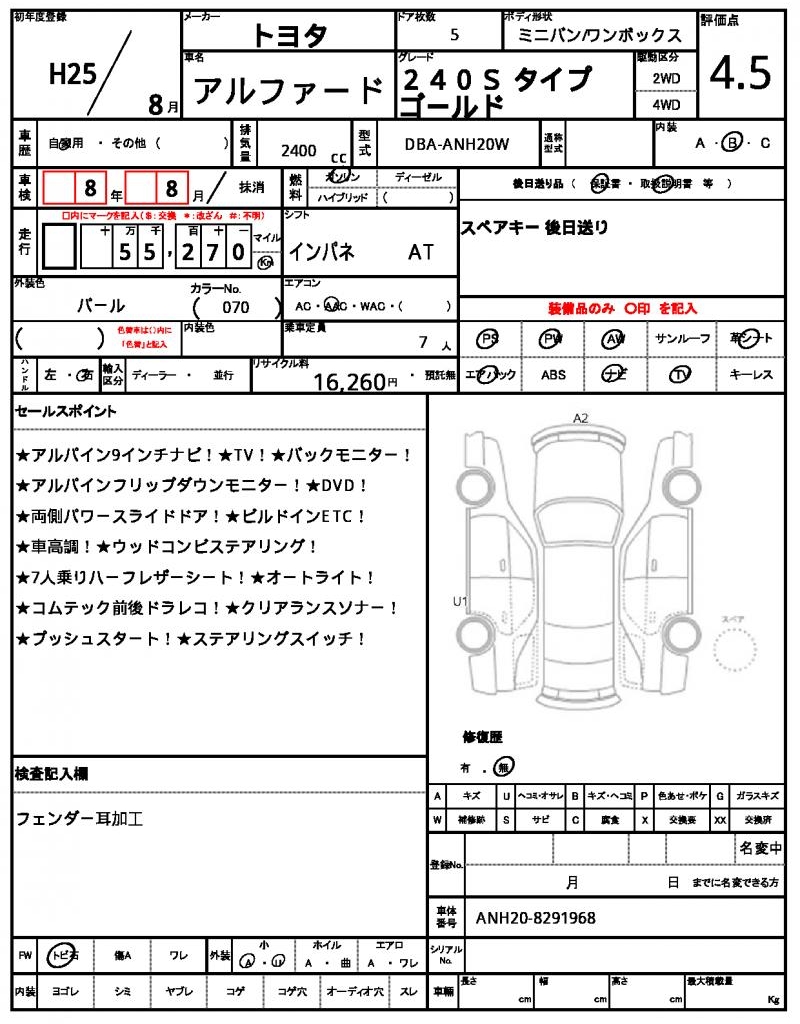 | TOYOTA | ALPHARD | 2013 | 2400 cc | ||||||||||||||||