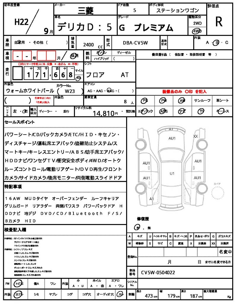 | MITSUBISHI | DELICA D:5 | 2010 | 2400 cc | ||||||||||||||||