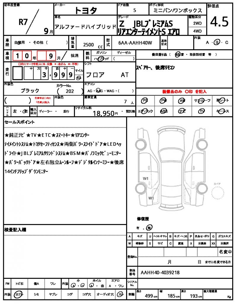 | TOYOTA | ALPHARD HYBRID | 2025 | 2500 cc | ||||||||||||||||