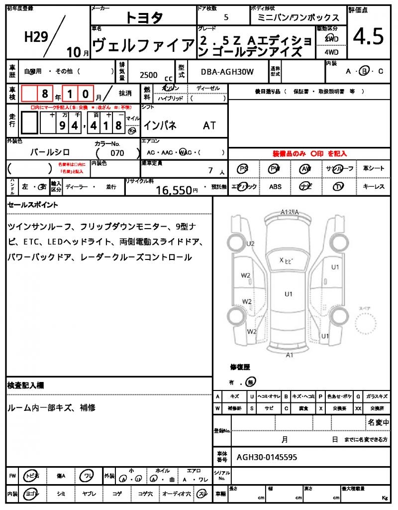 | TOYOTA | VELLFIRE | 2017 | 2500 cc | ||||||||||||||||