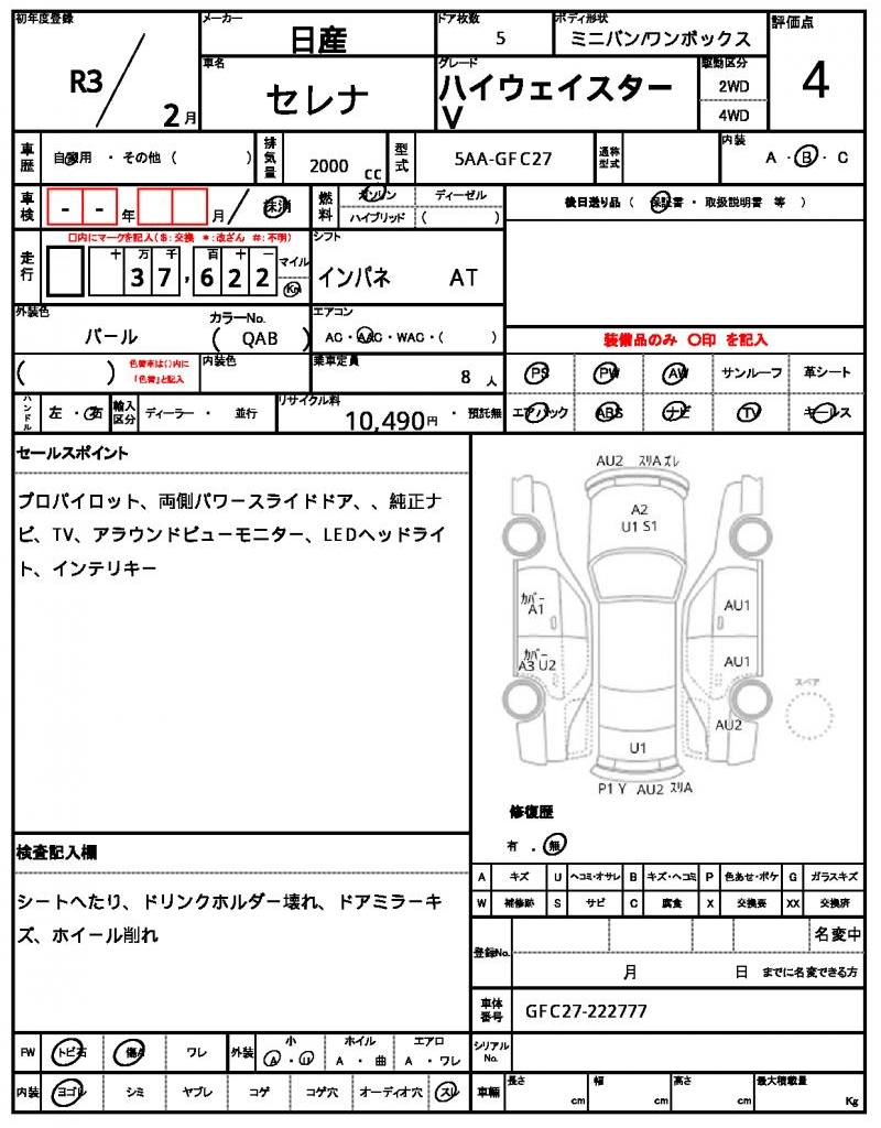 | NISSAN | SERENA | 2021 | 2000 cc | ||||||||||||||||