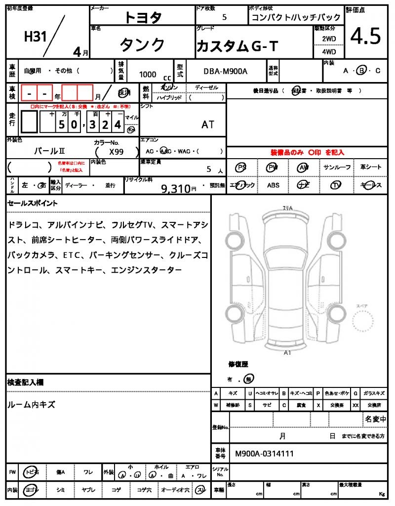 | TOYOTA | TANK | 2019 | 1000 cc | ||||||||||||||||