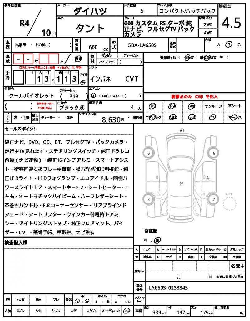 Meet the 2022 DAIHATSU TANTO, a vibrant purple hatchback that’s sure to turn heads. Under the hood, you’ll find a 660 cc gasoline engine, paired with a reliable 2WD system and features like power steering to make navigating a breeze. As a used car from Japan, this TANTO is available for international buyers through AutoXGlobal. Get ready to drive away in this unique purple Japanese used car export, the 2022 DAIHATSU TANTO, with its power windows and sleek aluminum wheels.