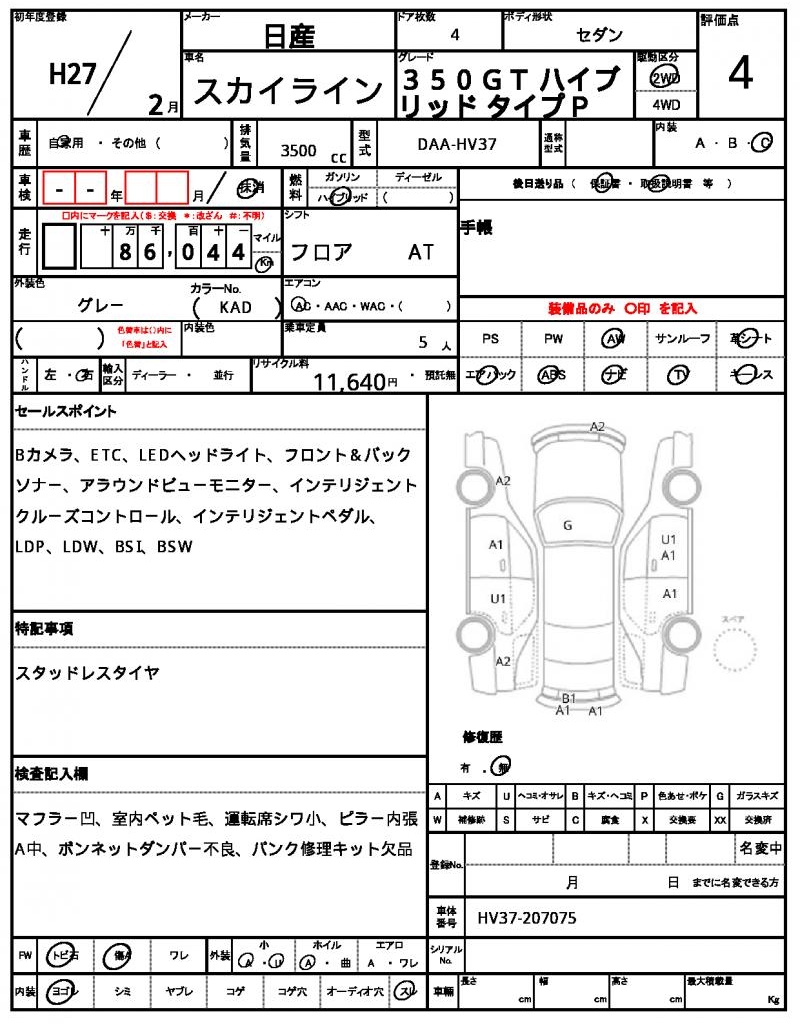 | NISSAN | SKYLINE | 2015 | 3500 cc | ||||||||||||||||