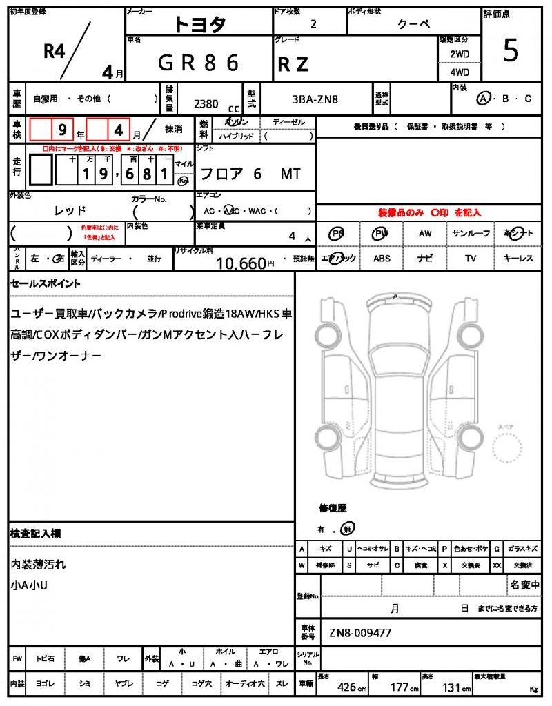 | TOYOTA | GR86 | 2022 | 2380 cc | ||||||||||||||||