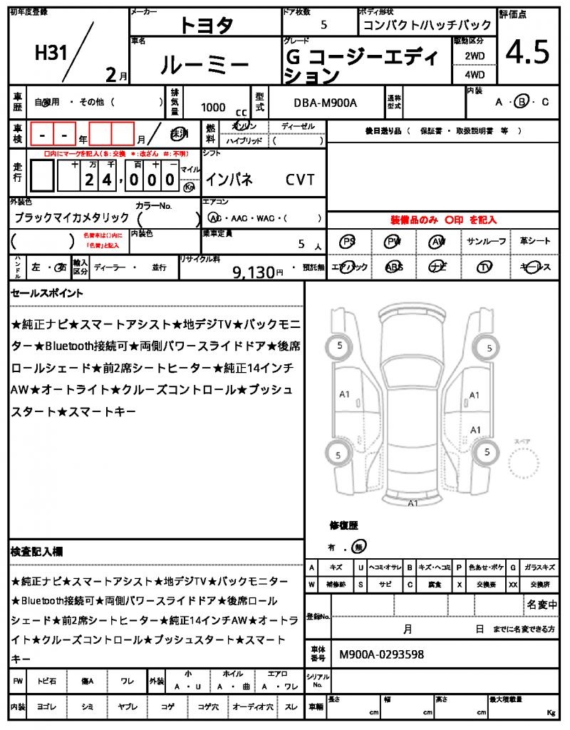 | TOYOTA | ROOMY | 2019 | 1000 cc | ||||||||||||||||