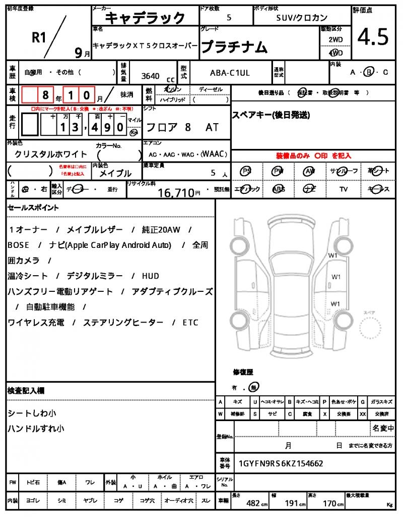 | CADILLAC | CADILLAC XT5 CROSSOVER | 2019 | 3640 cc | ||||||||||||||||