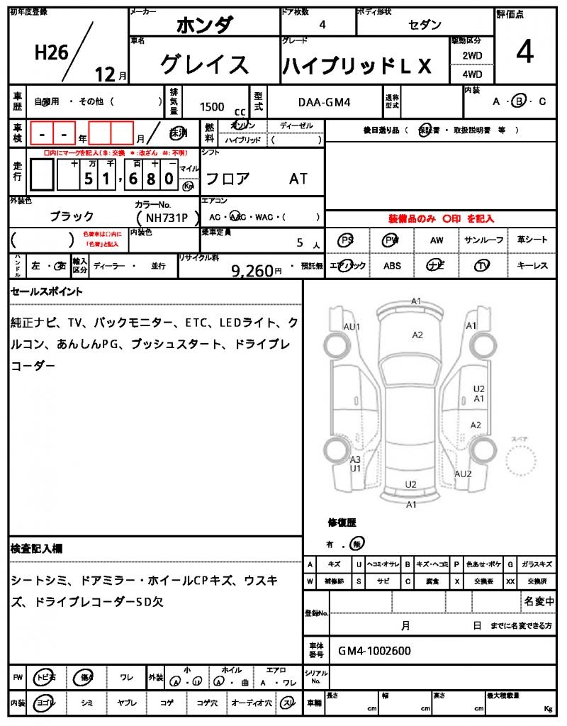 | HONDA | GRACE | 2014 | 1500 cc | ||||||||||||||||