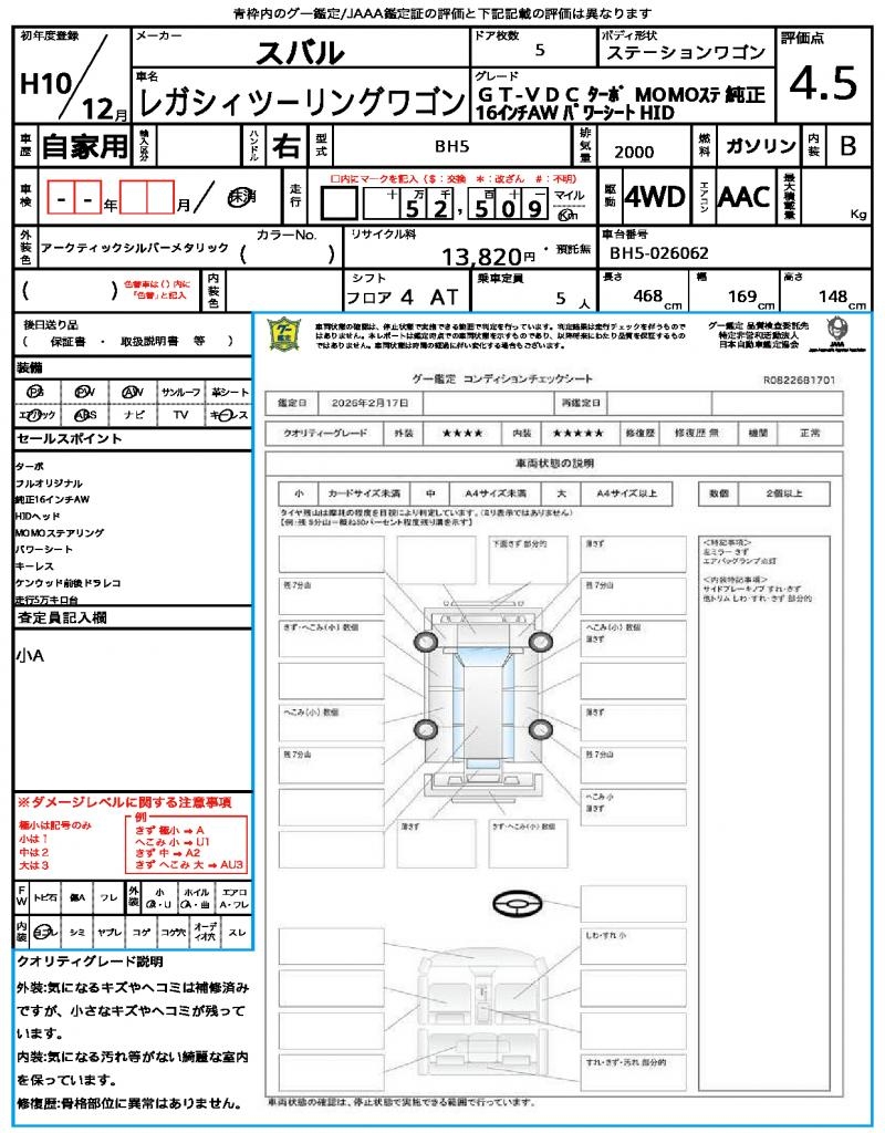 SUBARULEGACY TOURING WAGON19982000 cc