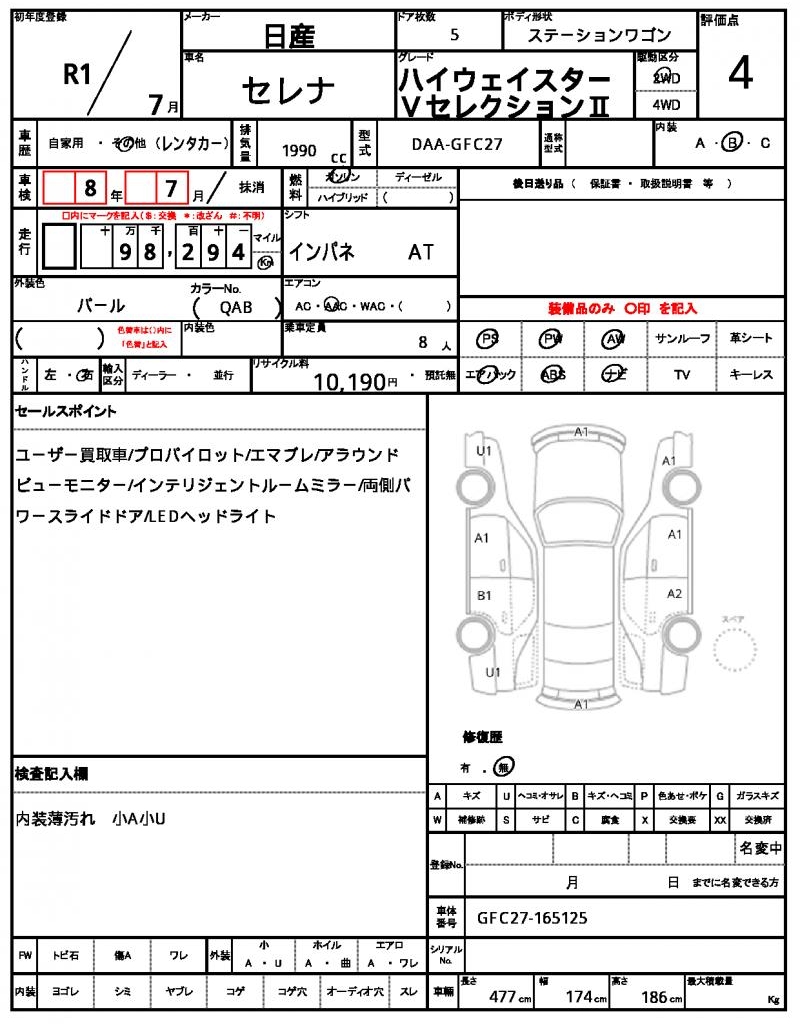 | NISSAN | SERENA | 2019 | 1990 cc | ||||||||||||||||
