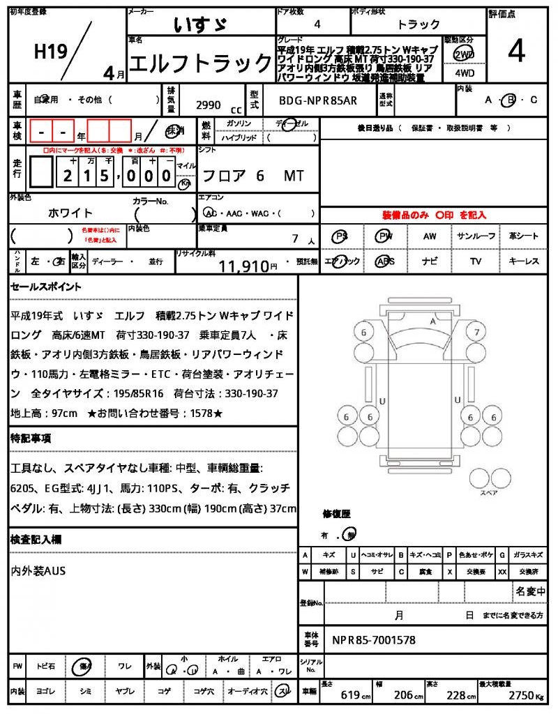 | ISUZU | ELF TRUCK | 2007 | 2990 cc | ||||||||||||||||