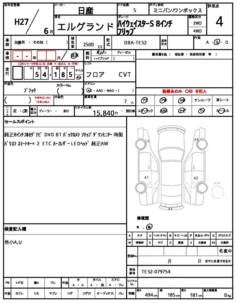 | NISSAN | ELGRAND | 2015 | 2500 cc | ||||||||||||||||