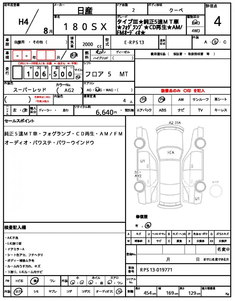 | NISSAN | 180SX | 1992 | 2000 cc | ||||||||||||||||