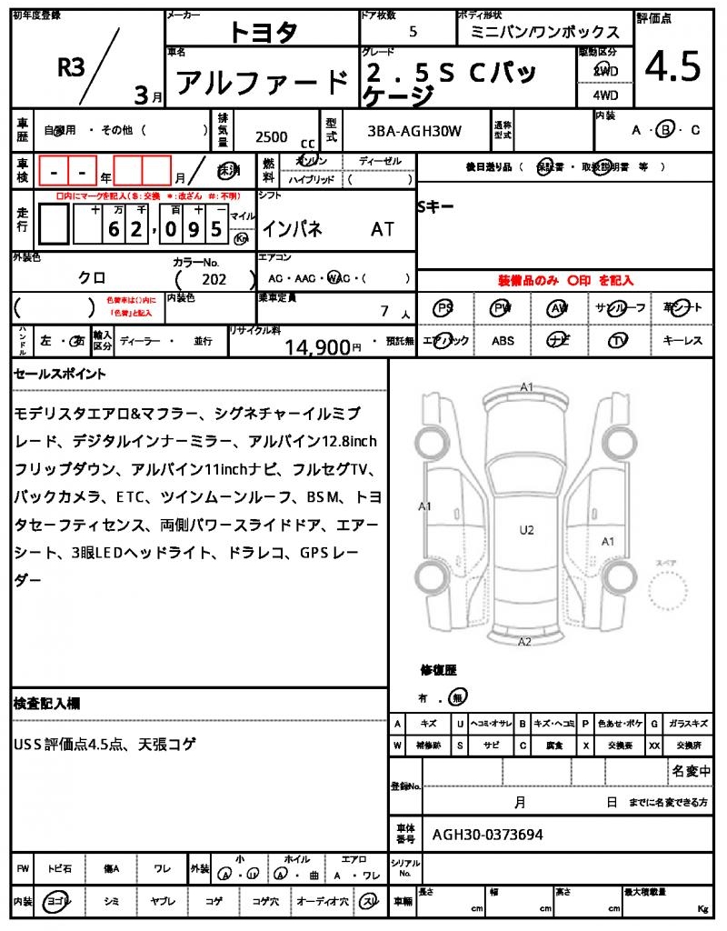 | TOYOTA | ALPHARD | 2021 | 2500 cc | ||||||||||||||||