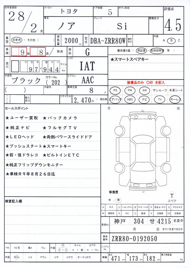 | TOYOTA | NOAH | 2016 | 2000 cc | ||||||||||||||||