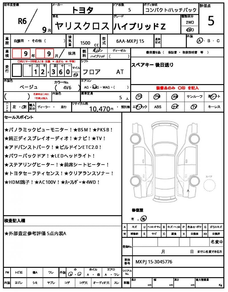 | TOYOTA | YARIS CROSS | 2024 | 1500 cc | ||||||||||||||||