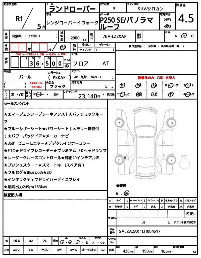| LAND ROVER | RANGE ROVER EVOQUE | 2019 | 2000 cc | ||||||||||||||||