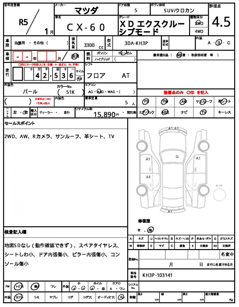 | MAZDA | CX-60 | 2023 | 3300 cc | ||||||||||||||||
