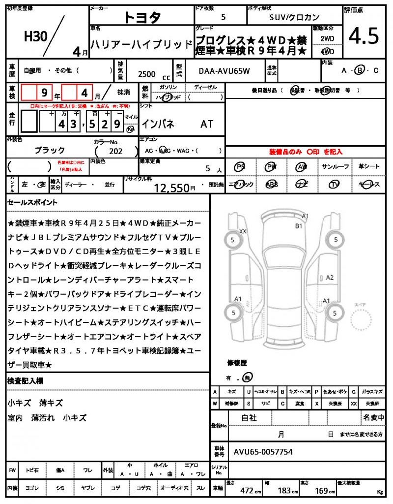 | TOYOTA | HARRIER HYBRID | 2018 | 2500 cc | ||||||||||||||||
